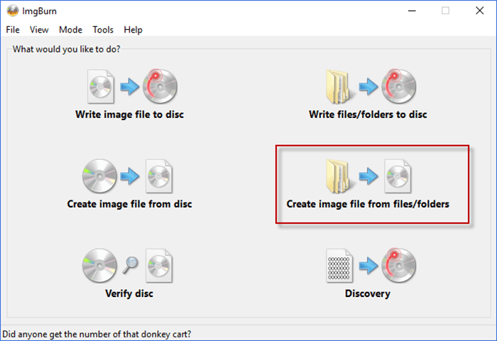 第 1 步:安装 ImgBurn 并启动它。然后选择从文件/文件夹创建图像文件。