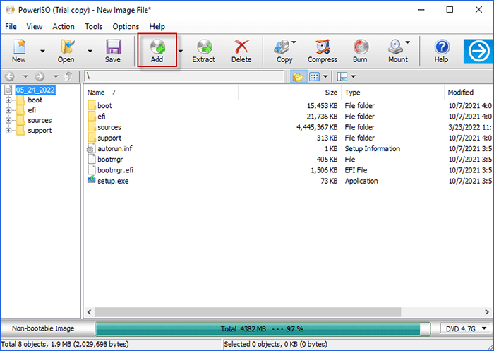 第 2 步:选择添加添加创建 ISO 所需的文件夹的选项。