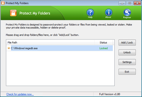 使用保护我的文件夹,您可以使用密码锁定和保护注册表编辑器。如果不知道您的密码,任何人都无法访问注册表编辑器。