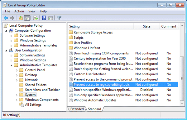 - 当组策略编辑器打开时,导航至用户配置>管理模板>系统。双击阻止访问注册表编辑工具在右侧面板上。