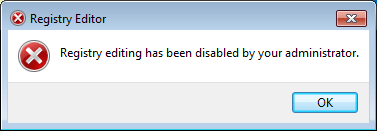 - 当用户尝试访问注册表编辑器时,他们将收到一条错误消息,指出“管理员已禁用注册表编辑”。
