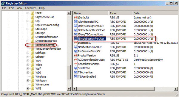 第 2 步:之后注册表编辑器打开,导航至HKEY_LOCAL_MACHINESYSTEMCurrentControlSetControlTerminal 服务器。然后在右侧窗格中双击fSingleSessionPerUser。