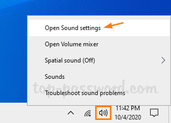 右键单击任务栏通知区域中的音量图标,然后选择“打开声音设置”。