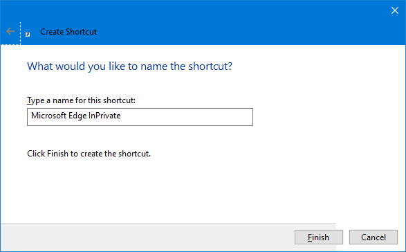 - 为快捷方式命名。例如,Microsoft Edge InPrivate。