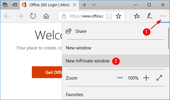 启动 Edge 浏览器,然后单击标有“更多操作”的三个点。选择新的 InPrivate 窗口在私人模式下打开一个新窗口。