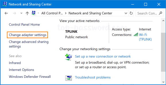 在出现的窗口中,单击“更改适配器设置” 在左侧。