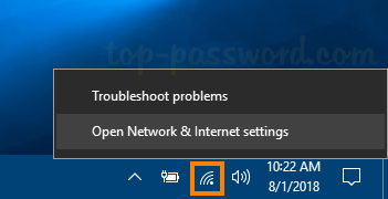 右键单击任务栏通知区域的网络图标,然后选择“打开网络和 Internet 设置”从弹出菜单中。