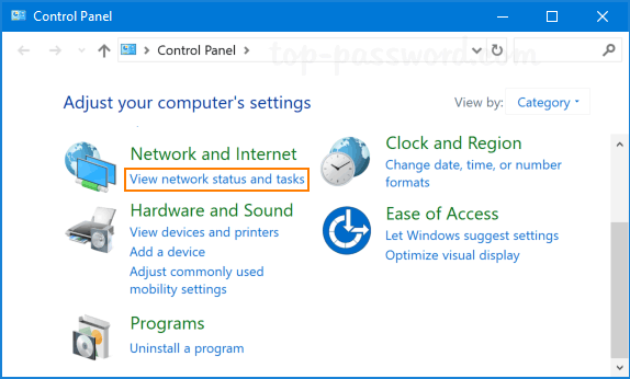 在类别视图中打开控制面板,单击“查看网络状态和任务“网络和互联网”标题下的链接。