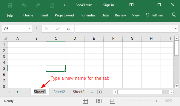 在 Excel 中重命名工作表选项卡的另一种方法是双击工作表选项卡。当您双击底部的工作表选项卡时,选项卡名称(例如 Sheet1)会突出显示。之后,您只需输入新名称即可。