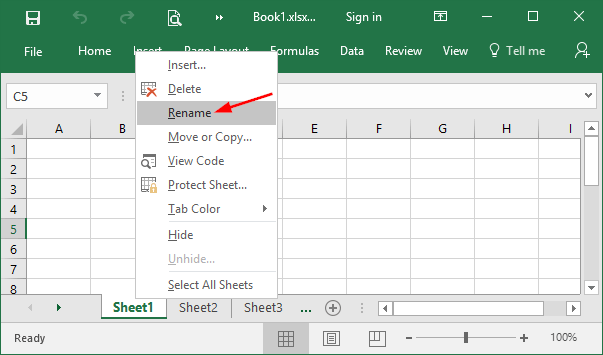 右键单击要重命名的特定选项卡。右键单击时,您可以看到出现许多选项。从那里,选择重命名快捷菜单。
