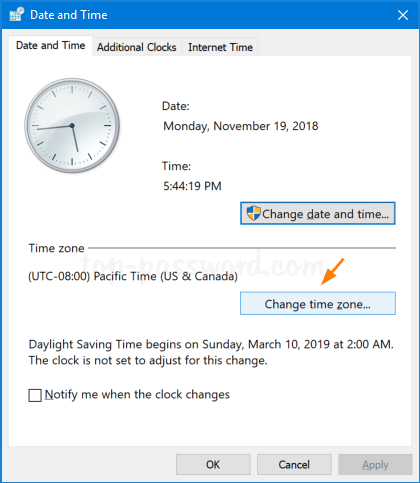 单击更改时区按钮。