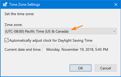 在“时区设置”窗口中,您可以根据您的物理位置调整时区。点击好的保存您的更改。
