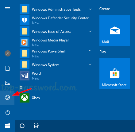 单击开始按钮,然后选择设置从打开的“开始”菜单。