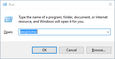 - 按 Windows 键 + R 打开“运行”框。类型secpol.msc并按 Enter 键。