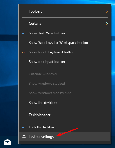 右键单击任务栏上的空白区域,然后选择任务栏设置从弹出菜单中。