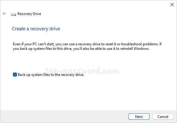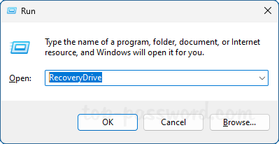 RecoveryDrive然后单击好的,它将立即运行恢复驱动器应用程序。