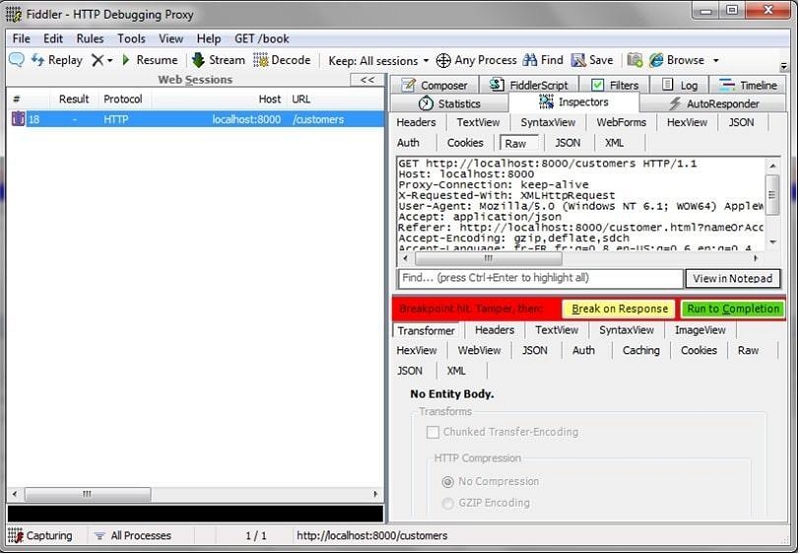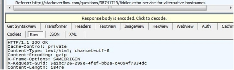 步骤7:您可能会看到一个黄色按钮,上面写着“响应正文已编码。单击即可解码。”在右侧面板上。单击此选项。