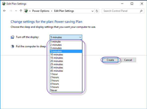 步骤4:现在,您可以根据您的要求在以下屏幕中根据自己的要求更改睡眠时间,然后点击创造按钮。