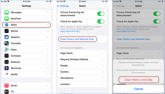 如果您在 iPhone 中运行应用程序,将会有一些缓存占用您的存储空间。要清除 Safari 中的历史记录和 cookie 等垃圾缓存,您可以按照以下方式操作: