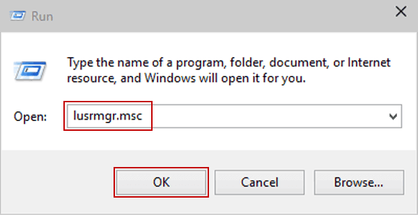 按Windows+R要打开“运行”,请输入lusmgr.msc在空白框中并点击好的。
