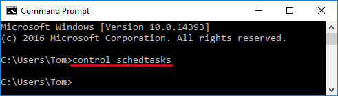 在命令提示符处,键入控制计划任务并按 Enter 键。