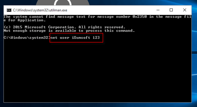 第 6 步:输入网络用户在命令提示符窗口中,例如net user iSoft 123,然后按Enter键重置密码。