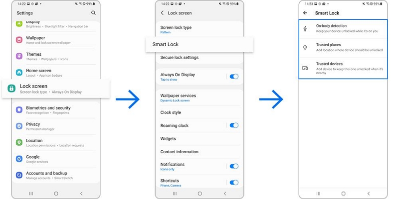 - 禁用各种类型的屏幕锁定,例如图案、PIN、密码、指纹和面部识别。