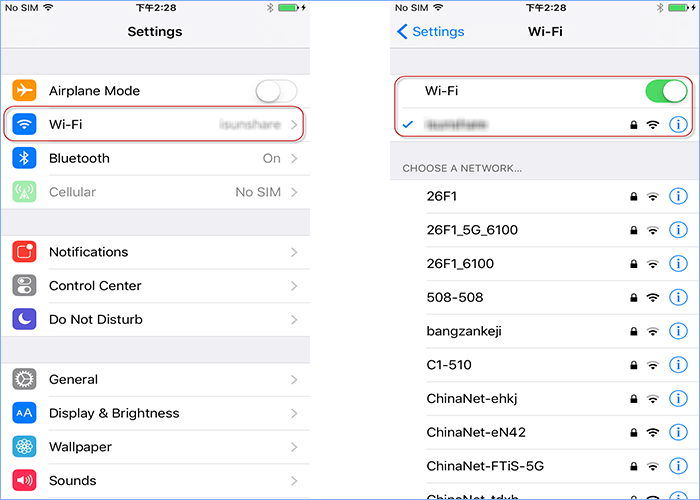 前往设置>无线上网确保您的 iPhone 已连接到稳定的 Wi-Fi。如果存在互联网连接问题,可能会导致备份后 iPhone 联系人无法显示在 iCloud 中。要解决此问题,您需要首先解决网络问题。