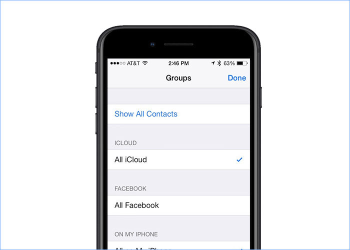 联系人组可以帮助您同时向多个人发送相同的消息。如果您选择将 iPhone 联系人群组同步到其他第三方帐户(例如 Facebook),可能会导致您的 iPhone 联系人在备份后不会显示在 iCloud 中。要在 iCloud 上查看与其他设备的联系人,这里只能选择“联系人组”中的“所有 iCloud”。