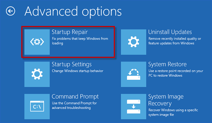 修复 Windows 10/11 上损坏的注册表项的另一种方法是使用 Windows 启动修复。 Windows 启动修复是一项恢复功能,可让您修复丢失或损坏的系统文件。您可以尝试按照以下步骤修复损坏的注册表项。