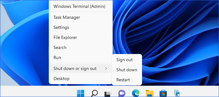 步骤1:右键单击“开始”菜单。然后按住转移按钮并选择重新启动。
