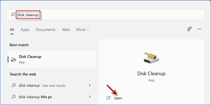 第 1 步:输入“磁盘清理”在搜索栏中,然后单击打开运行磁盘清理。然后选择您要清理的驱动器。