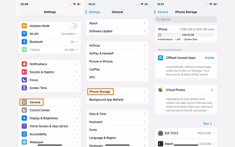 iPhone 上的存储空间,请转至设置>一般的>iPhone存储,你可能会看到