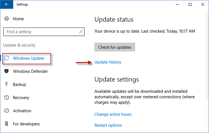 步骤1:按Win +我输入设置。然后选择Windows更新左侧的选项,单击更新历史记录。