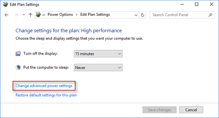 步骤3:在编辑计划设置窗口上,选择更改高级功率设置。