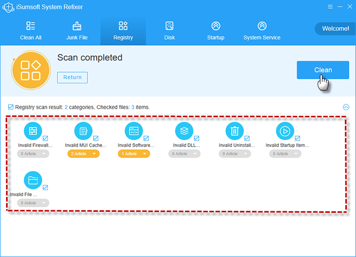 步骤3:当系统repixer找到无效的注册表项目时,您只需一键清除它们干净的按钮。