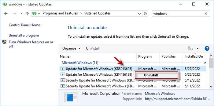 步骤2:选择卸载更新您将在列表上看到所有更新。