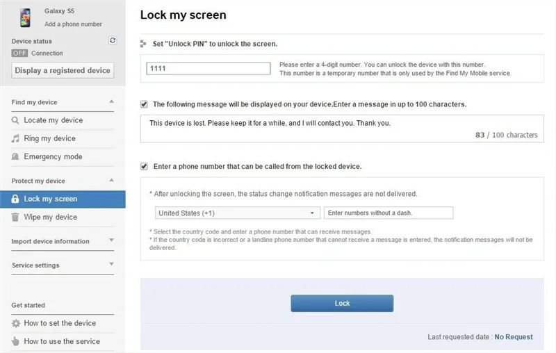 - 锁定之前,手机上必须已激活“查找我的手机”。