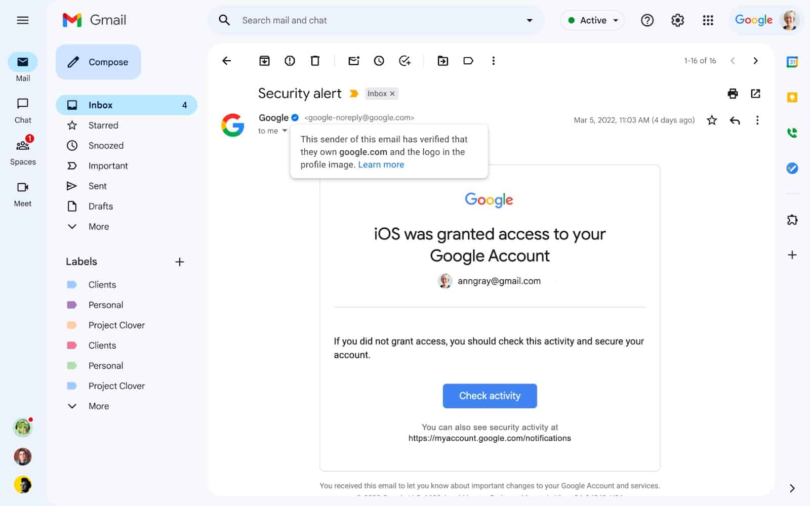 为了实现这一点,谷歌最近推出了一项新的蓝色复选标记功能,该功能使用 2021 年推出的消息识别品牌指示符 (BIMI) 系统来验证身份。这有助于用户区分合法来源和潜在黑客。