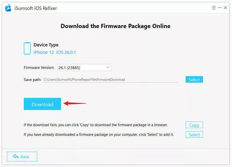 6. 单击“下载”。该软件将下载修复和更新设备所需的固件。