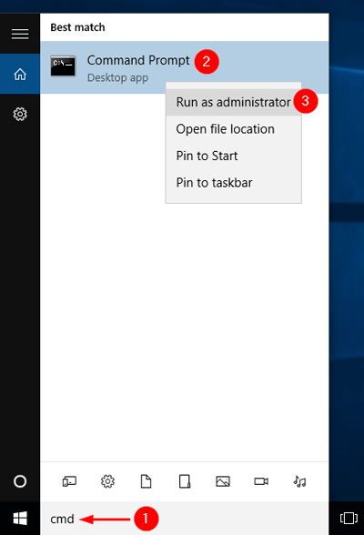 单击任务栏中的 Cortana 搜索框,然后键入指令。点击命令提示符从搜索结果启动非提升的命令提示符。