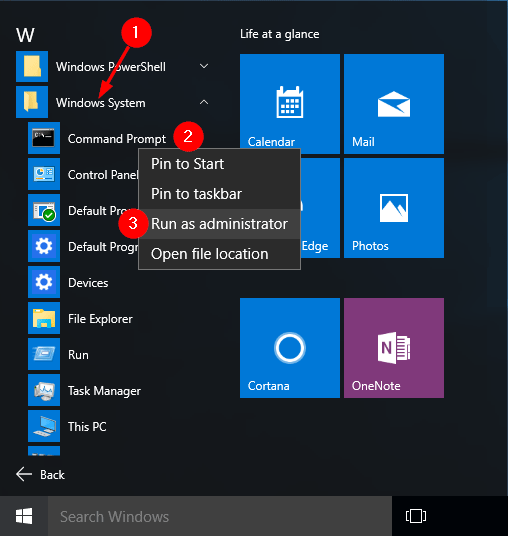 向下滚动并展开视窗系统文件夹,你会看到命令提示符捷径。您可以单击它以在正常模式下启动命令提示符,或者右键单击它并选择“以管理员身份运行”以在管理员模式下启动命令提示符。
