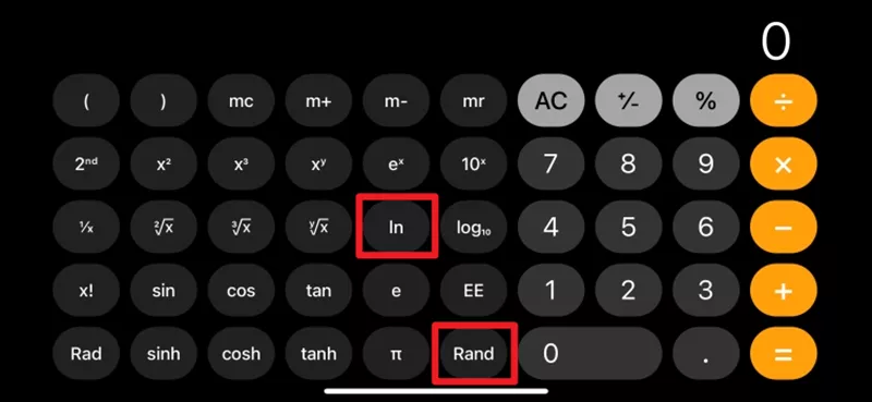 步骤5:将手机侧向转动进入科学模式,然后点击“ In”,然后点击“ Rand”。