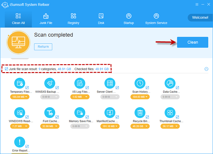 当您的系统空间所剩无几时,您的系统速度将会受到影响。为了加快华硕笔记本电脑在 Windows 10 中的运行速度,您可以通过删除 Windows 中存储的不必要的文件和应用程序来清理 Windows。 iSoft System Refixer是一款专业的系统优化工具,可帮助您单独删除垃圾文件、删除重复文件、清除无效注册表项、释放C盘、优化启动以及管理Windows中的系统服务。