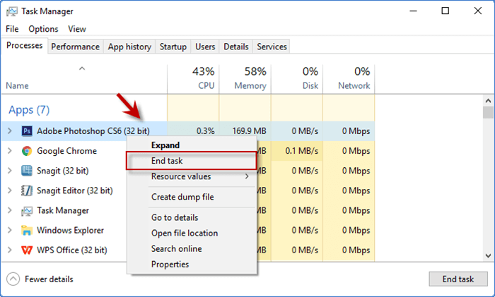 步骤2:右键单击在不必要的后台应用程序上,然后单击结束任务。