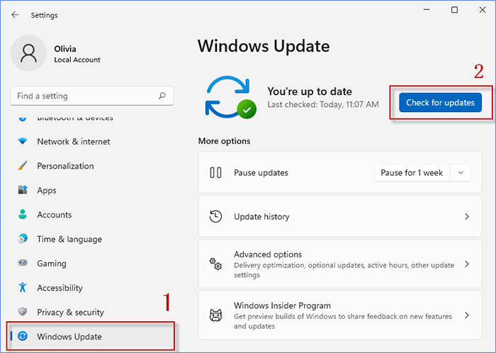 第 2 步:选择Windows更新并单击“检查更新”。