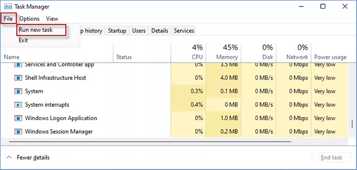 第 2 步:点击文件并选择左上角运行新任务。