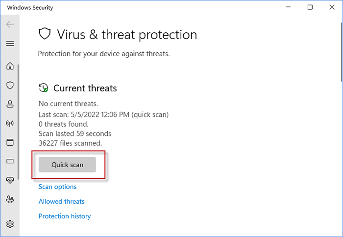 第 2 步:点击快速扫描检查当前是否存在一些威胁。如果是,只需处理威胁,您就可以像往常一样打开文件资源管理器。