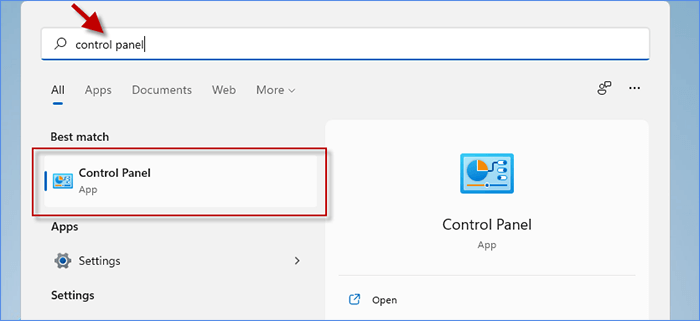 第 1 步:在搜索栏中输入控制面板并选择最佳匹配中的第一个。