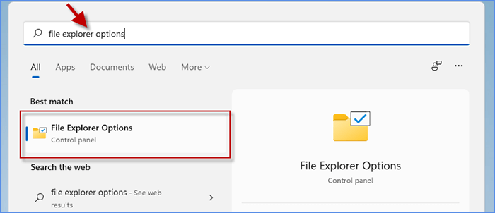 第1步:输入文件浏览器选项并在“最佳匹配”中选择一个。